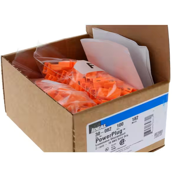 Luminaire Disconnect, 2-Wire, 0.6A / 600V Max, Conductor Range: 18AWG Solid, Color: Orange.